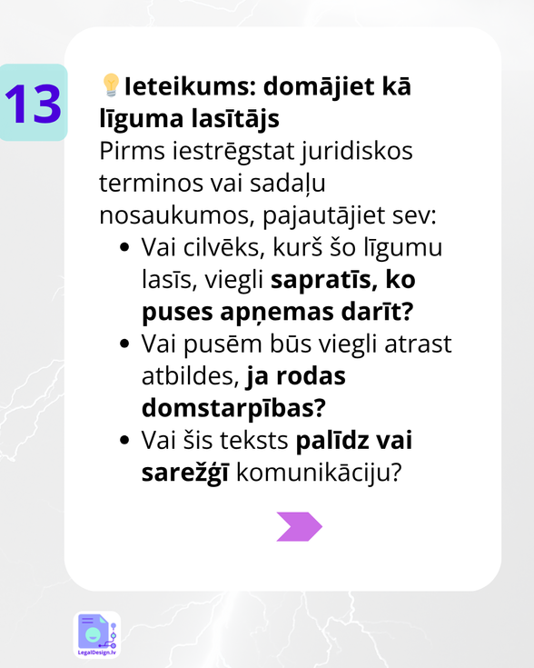 Svarīgākais nav izmantot juridiski “pareizos” virsrakstus, bet gan strukturēt informāciju saprotami.